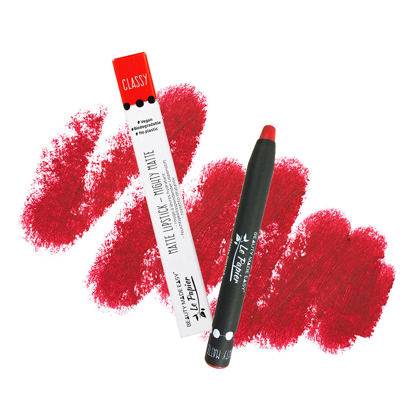 Batons mate feitos à base de ingredientes naturais que dão cor aos seus lábios ao mesmo tempo que os hidrata. Para uma secagem rápida, recomenda-se que após a sua aplicação se retire o excesso de batom. A sua embalagem é exclusivamente de papel, o que permite que no final, possa reciclar a mesma.