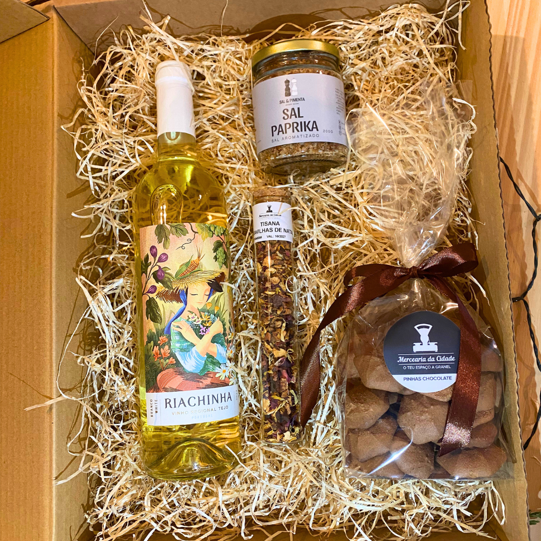 Cabaz 27 - Vinho + Chá + Sal Aromatizado + Biscoitos 17,60 € Desconto de %. Partilhar Compre este produto e ganhe 35 Pontos! Saber mais Vinho Escolha uma opção Golegão (Tinto) Riachinha (Branco) Chá Escolha uma opção Tisana Maravilhas de Natal Aloé Vera & Ginseng Chá de Frutas da Avozinha Chá de Frutas Tesouro dos Deuses Chá de Frutas Laranja e Maracujá Tisana Relax Anti-Stress Detox Premium Sal Aromatizado Escolha uma opção Paprika Limão Piri-Piri para Saladas Biscoitos Escolha uma opção Limão Laranja Coco Paciências Comprar Contactar Caixa embrulhada com vinho 75cl (branco ou tinto) + 1 tubo com chá 30g + 1 sal aromatizado sal & pimenta + biscoitos 200g Tags cabazpresentesnatalvinhotintobrancochásalsal aromatizadobiscoitos Características