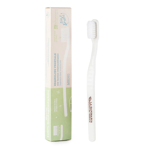 Escova de Dentes de Fibra Vegetal e Cabeça Substituível - Média | La Saponaria 3,70 € Desconto de %. Partilhar Compre este produto e ganhe 7 Pontos! Saber mais Comprar Contactar SKU: 1145 Uma escova de dentes totalmente natural e com cabeça substituível para respeitar os seus dentes e o meio ambiente! O cabo é feito de acetato de celulose, um material feito de polpa de madeira e fibra de algodão, 100% biodegradável e sustentável. As cerdas de óleo de rícino são perfeitas para uma limpeza suave nos dentes e gengivas, garantindo uma higiene perfeita de toda a boca. Permite trocar e substituir apenas as cerdas da escova sem a deitar fora, reduzindo em 92% o desperdício. Cerdas Médias. Vegan. 1 unidade. Embalagem: papel certificado FSC Tags escovadentesveganecosustentabilidadesustentávelhigiene