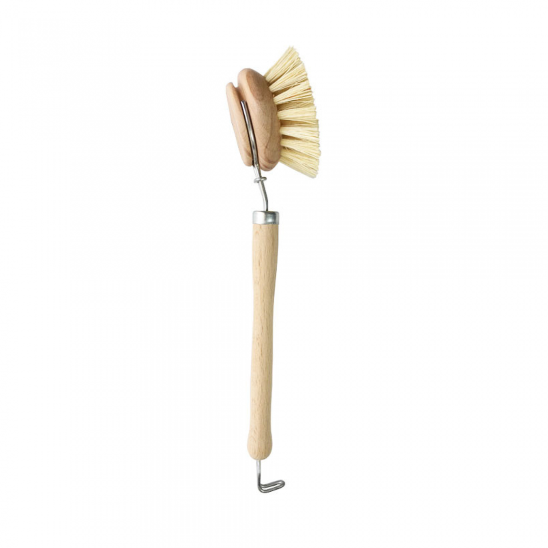 • Escova de lavar com cabo longo de madeira clara e cerdas claras