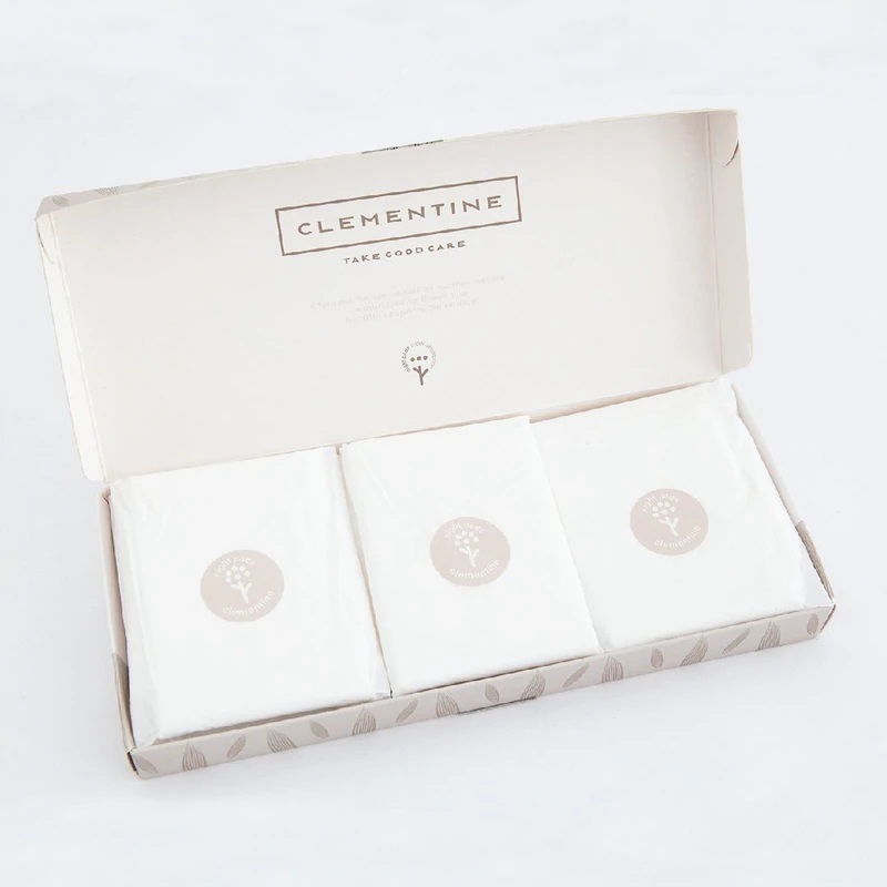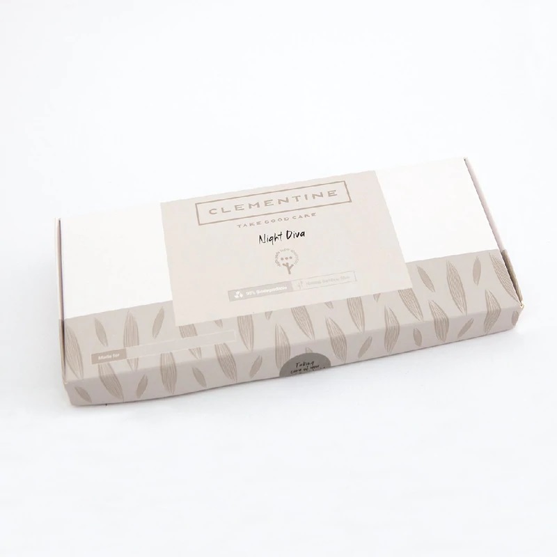Os pensos ultrafinos Clementine noite com abas são feitos de amido de milho e bambu, com propriedades antibacterianas naturais e respiráveis.
